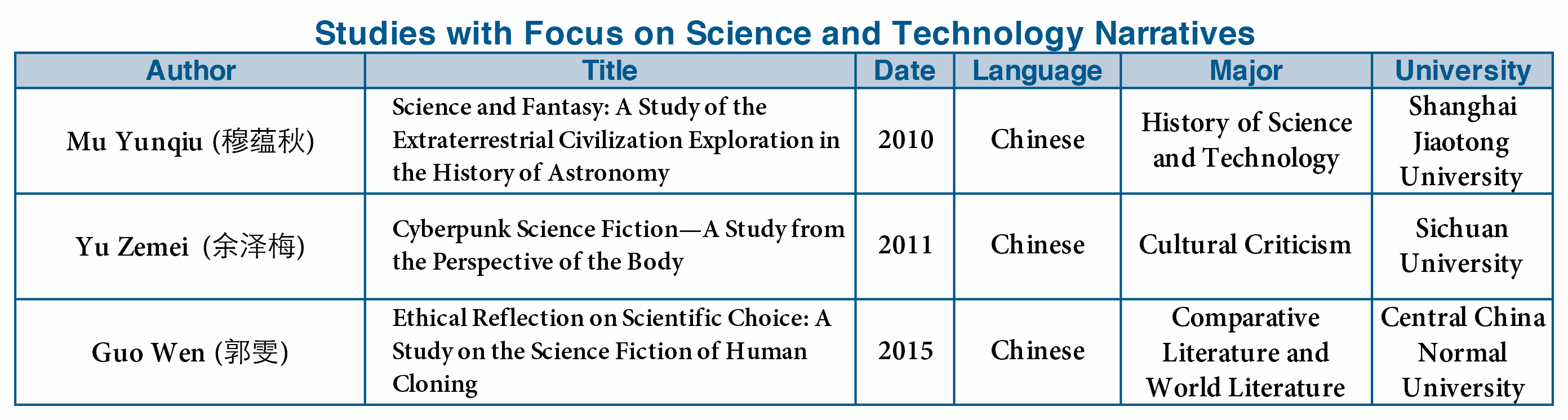 The third type of English SF studies highlights science and technology narratives, as the following table shows: