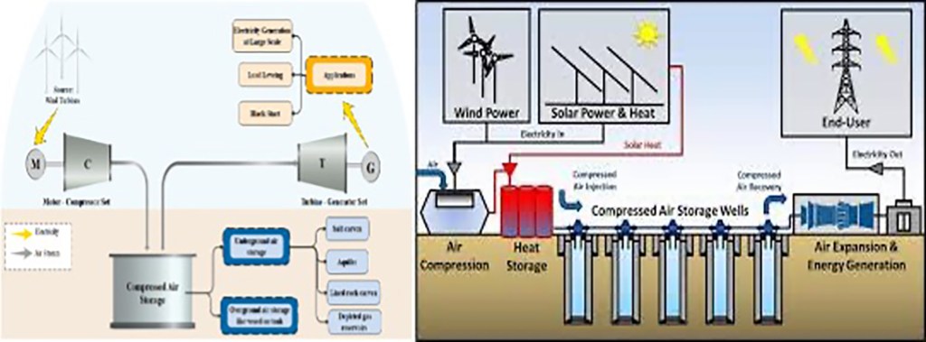 Today’s green energy movement has resurrected Verne’s vision of green compressed air. Compressed Air Energy Storage (CAES) is a potential renewable power grid because it can store power from clean energy sources such as wind turbines and solar panels. Like Verne’s futuristic Paris catacombs, CAES uses underground storage. At the urban utility scale, energy generated during periods of low demand can be released during peak demands. Many competitive thermodynamic designs are being researched, and pilot plants are being built. Of course, any power source can be used to compress air.
