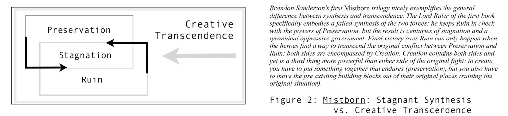 Yeine’s communion is found in the polyamorous connection with Nahadoth and Itempas, queering the communion necessary for Mormon theosis. Over and over again, once Yeine achieves godhood, we are reminded of the connections between her, Nahadoth, and Itempas. This spills over from the kiss that Yeine and Itempas share and manifests in a variety of ways. Yeine, in talking about what to do with Itempas, says that “Yet killing him was also impossible. Out of Three had the universe been made. Without all Three, it would all end” (386). Yeine, Itempas, and Nahadoth are all three necessary for the universe to exist. They are bound together in the creation of the Universe and in its continued existence. Itempas, Nahadoth, and Enefa were all lovers and that same pattern is teased with Yeine’s replacement of Enefa as the third member, though that collective communion and sociality is found for Yeine only after she becomes a god (though she has had romantic and sexual encounters with Nahadoth throughout the novel).